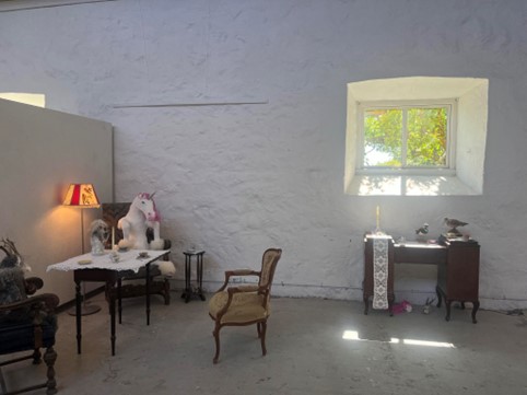 Ask (fra situationen i stuen) skulptur, 91x44x35cm, blandede materialer, Freja Franciska Lehnert f. 2003