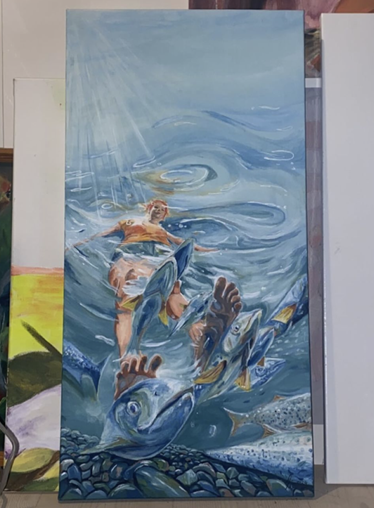 Fisk, 70x35cm, akryl på lærred, Aviaja Lauesen f. 2003