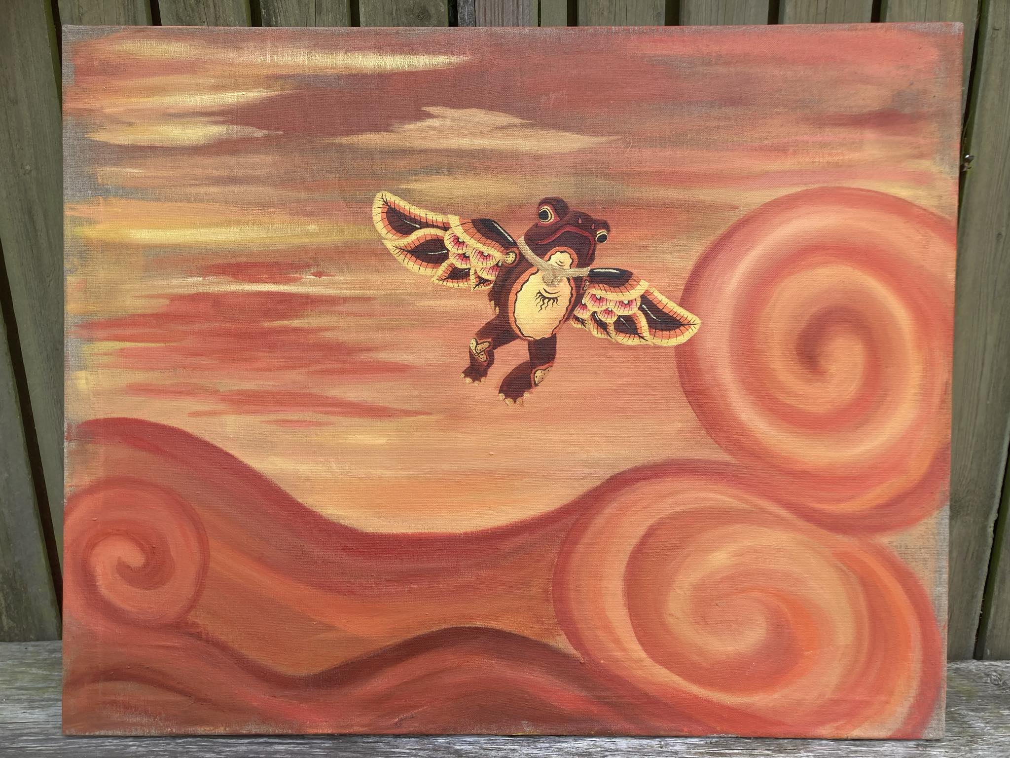 Ham her kan flyve, 100x80cm, akryl på hørlærred, Freja Franciska Lehnert f. 2003