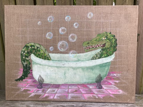 Hvis du ser en…, 75x55cm, akryl og kridt på hørlærred, Freja Franciska Lehnert f. 2003