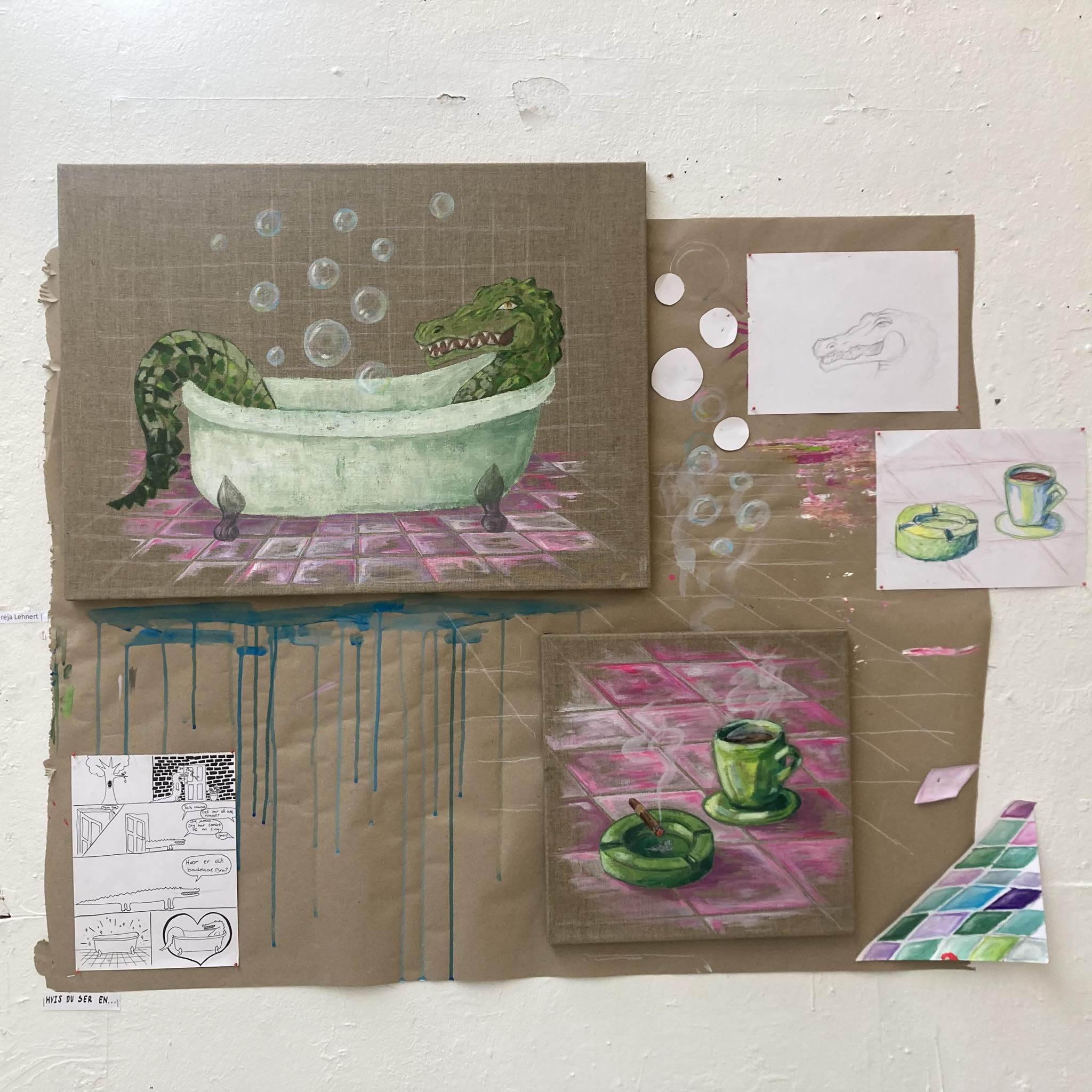 Hvis du er en…2, 40x40cm, akryl og kridt på hørlærred, Freja Franciska Lehnert f. 2003