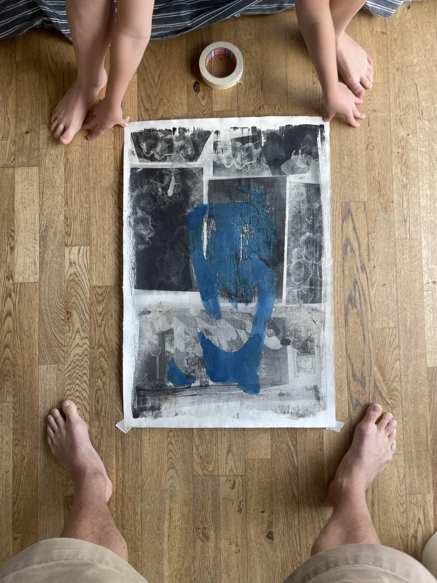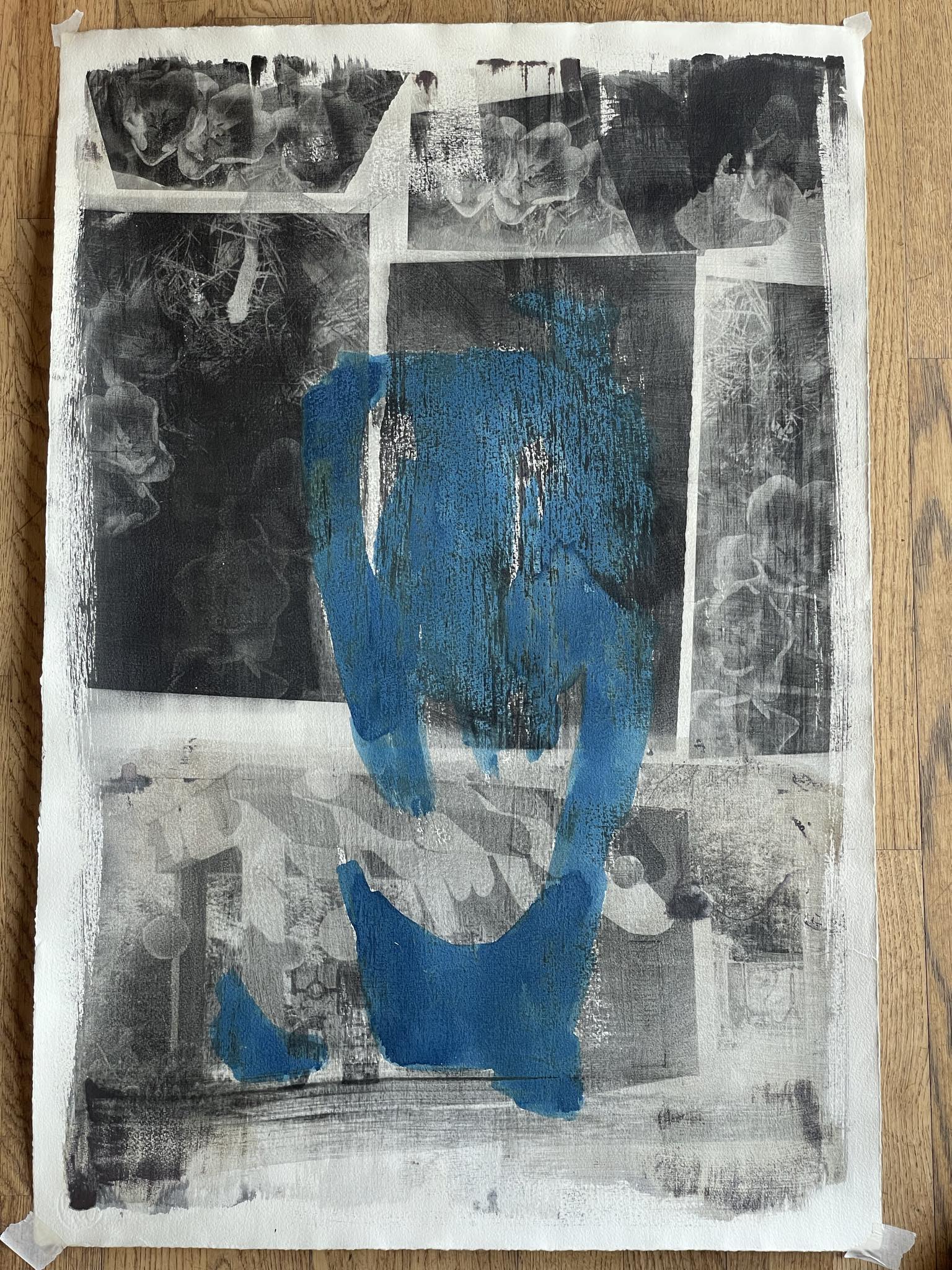 Petroleums tulipaner, 77x53cm, liquid light, cyantopi, på bomuldspapir, Elias Kongsted Misander f. 2002