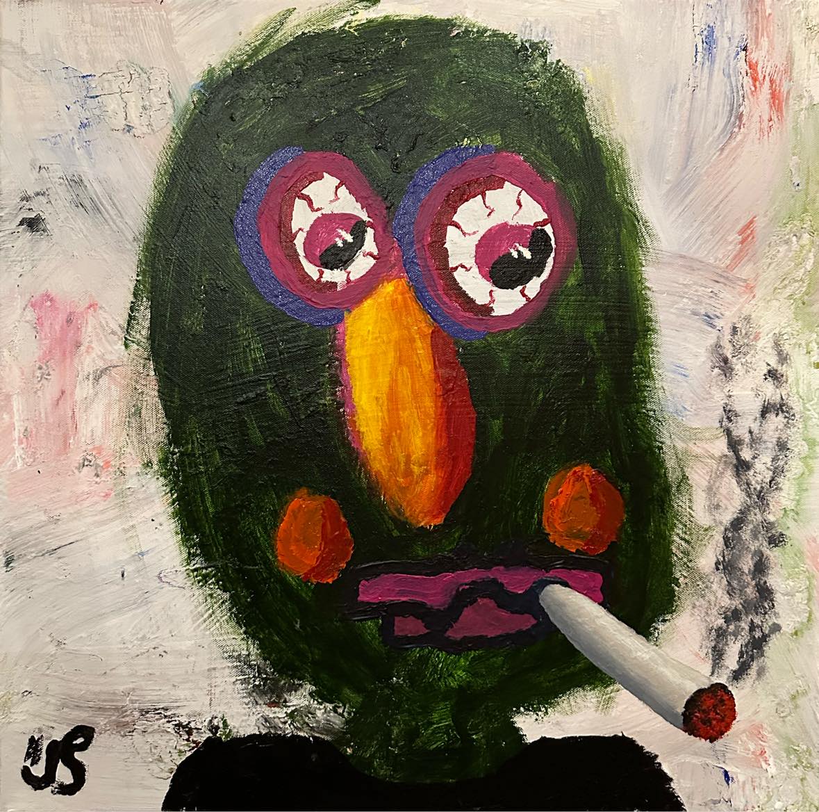 Selvportræt, 60x60cm, akryl på lærred, Janus Rosholm f. 2002