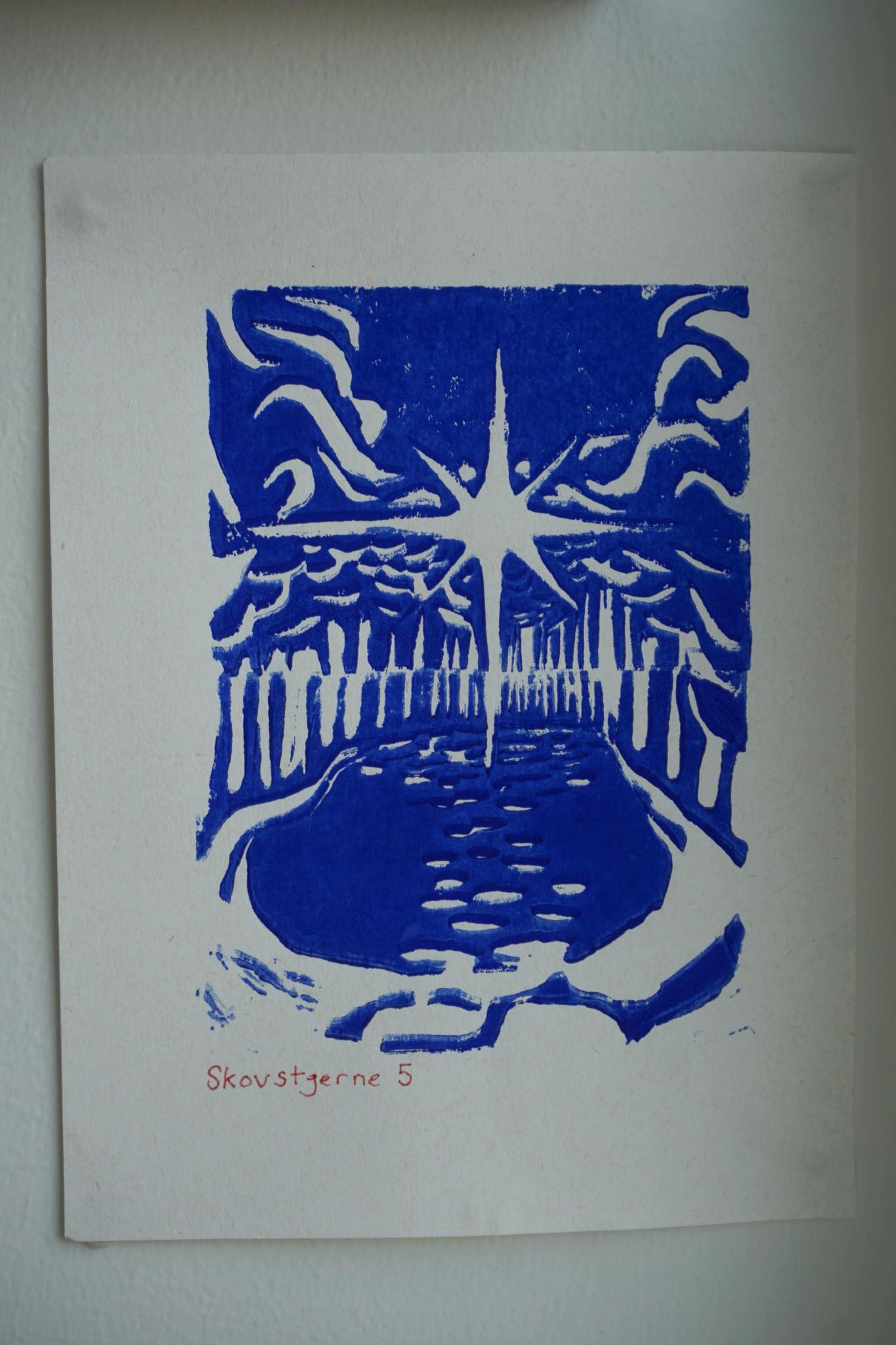 “Skovstjerne” 19×14, linoleumstryk på papir