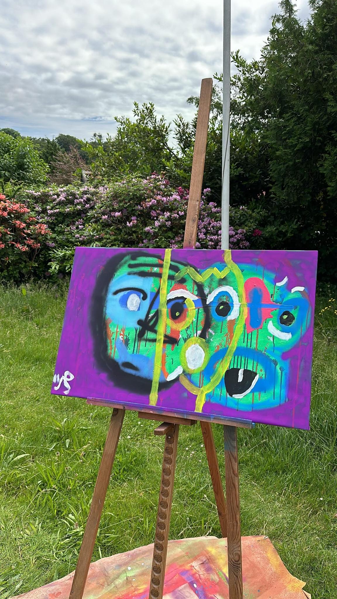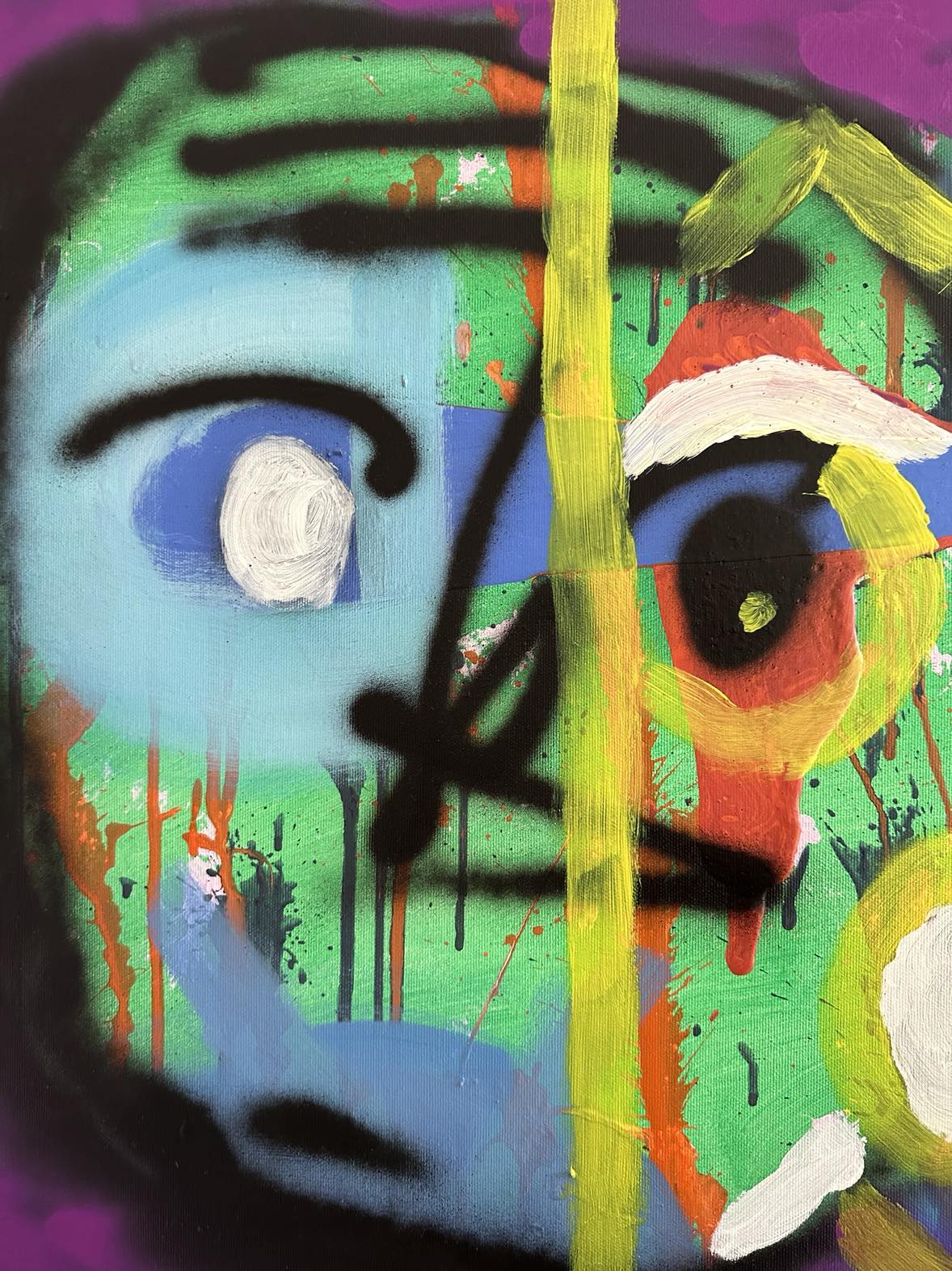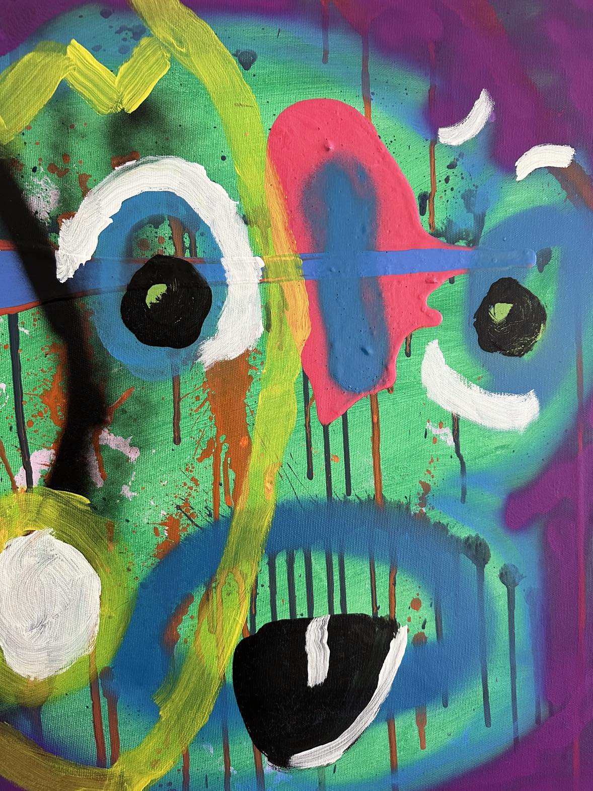 Treenighed , 95x95cm, graffiti og akryl på lærred, Janus Rosholm f. 2002