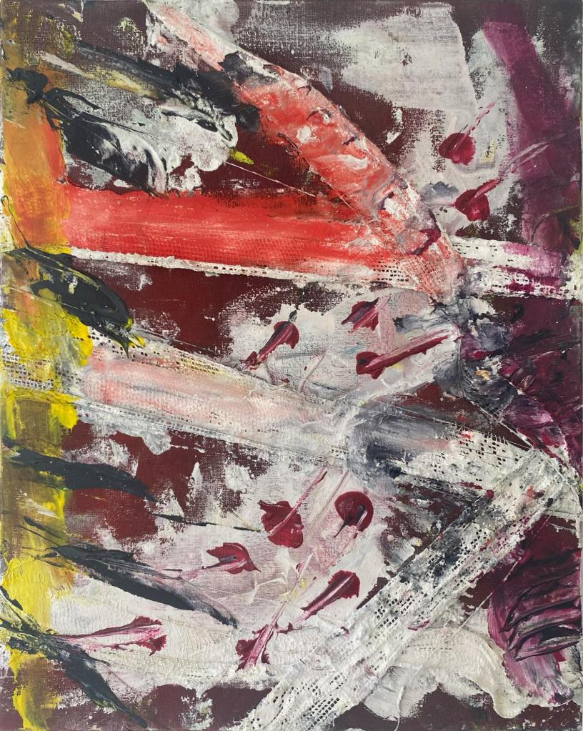 Jeg maler når jeg brækker mig ud over lærredet med usynlige ord og ideer. Jeg lader mine fingre forføre ideen og skabe noget usagt. At male er som en dans med en fremmede. Jeg maler i stunder hvor at omverdenen ligger skindød for mine fødder. At male giver mig ro og fortvivlelse og had, kærlighed og jaloux. Jeg elsker at male og jeg hader at male. Ord er nemmere sagt med maling end spyt. Derfor maler jeg